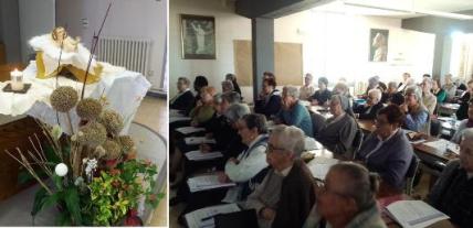 Després d’una introducció per situar-nos el tema vam passar a la celebració de l’Eucaristia celebrada per mossèn Joan Serrabassa que ens va presentar el temps de Nadal i la seva litúrgia com un reflex de la mateixa vida on la tendresa i l’alegria s’agafen de la mà amb els plors, la creu, els sofriments. Serà aquesta la realitat que vivim en les nostres comunitats, en la nostra missió? En les tres Eucaristies que M. Joan va presidir, expressà el sentit de les innocentades avui i de la llum que només pot il•luminar amb els qui la posseeixen.