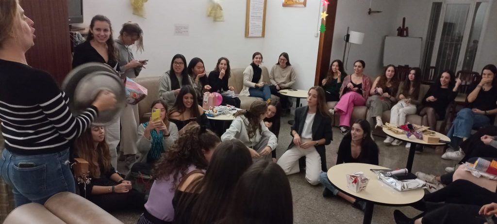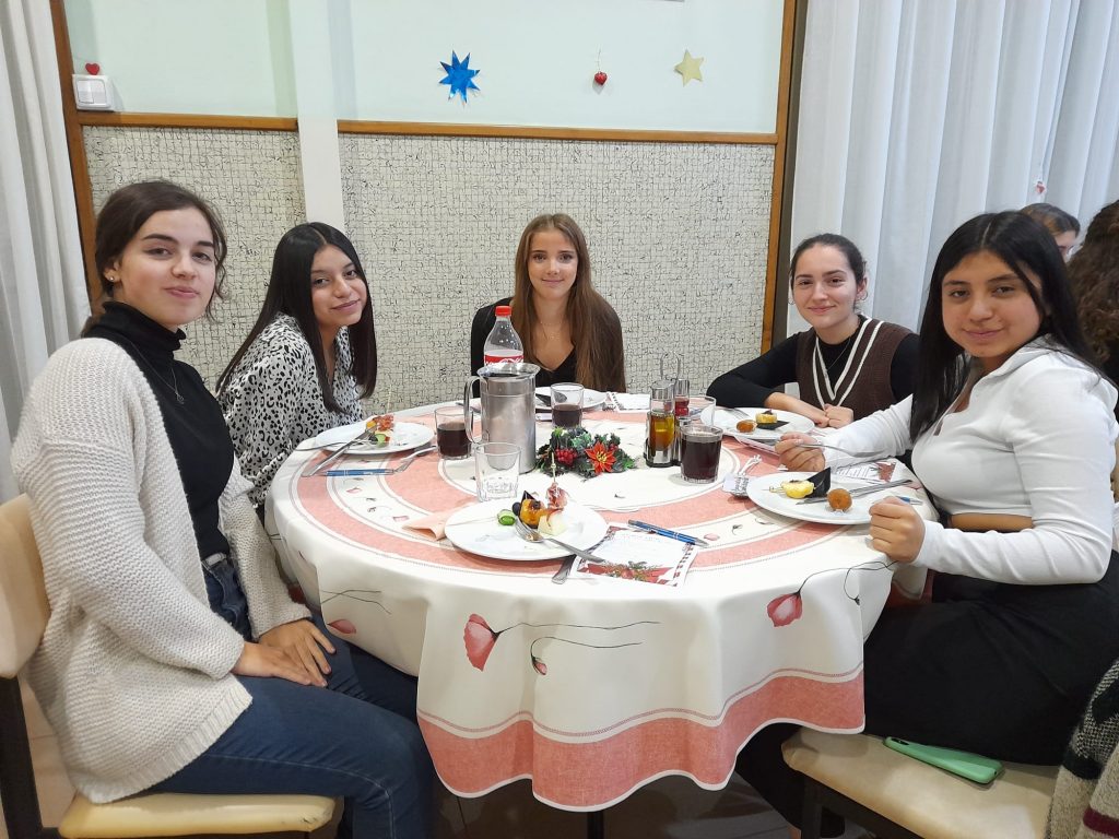 Hola! som la Lían i l’Encarna, noies de la residència Elisabets. El dia 24 de novembre vàrem celebrar la festa de Nadal, ja que pel desembre tenim molts exàmens i per aquest motiu l’ avencem . A les nou del vespre vàrem tenir el sopar de gala amb un menú deliciós, que ens va encantar. Desprès vàrem celebrar l’Eucaristia amb el P. Gerard. Fou una Eucaristia molt viscuda amb cants que totes havien escollit. El lema era: “Obre la porta al Nadal” vàrem reflexionar molt sobre el símbol de com nosaltres podem ser una clau pels altres , amb el text de l’evangeli “Soc a la porta i truco”, el Pare Gerard ens va obrir el cor amb les seves paraules, invitant-nos a ser persones obertes, més solidaries i a conèixer més a Jesús.
