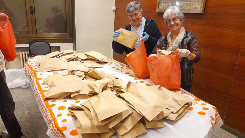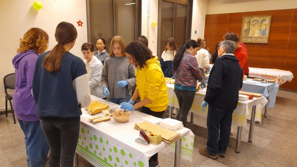 Un cop preparats tots els entrepans, van compartir plegats la pregària i, finalment, van sortir al carrer a repartir l’aliment.