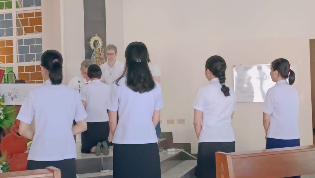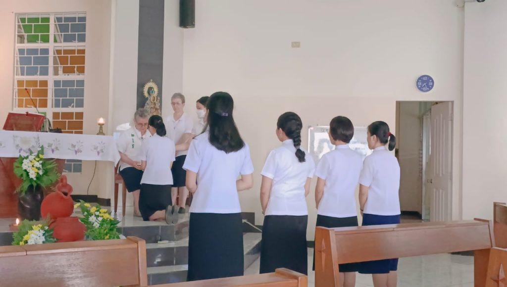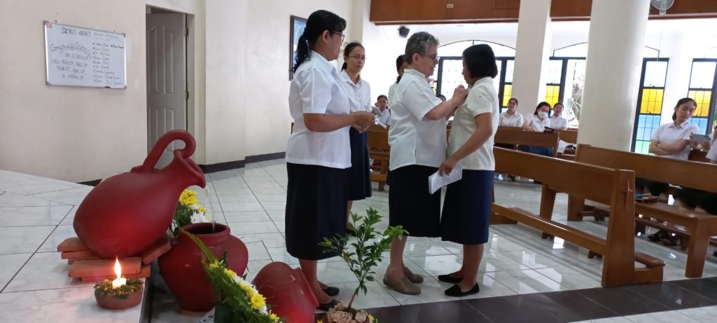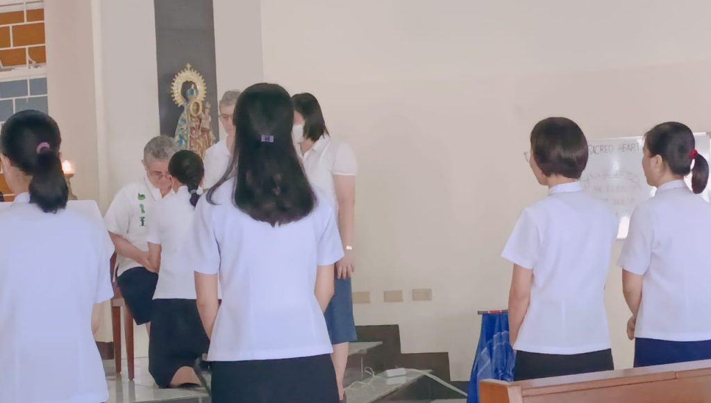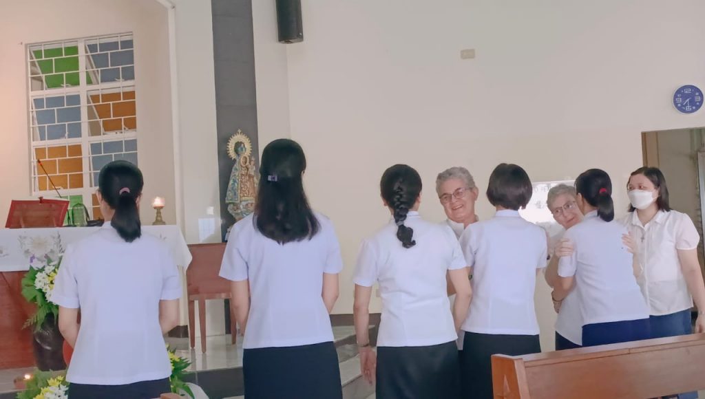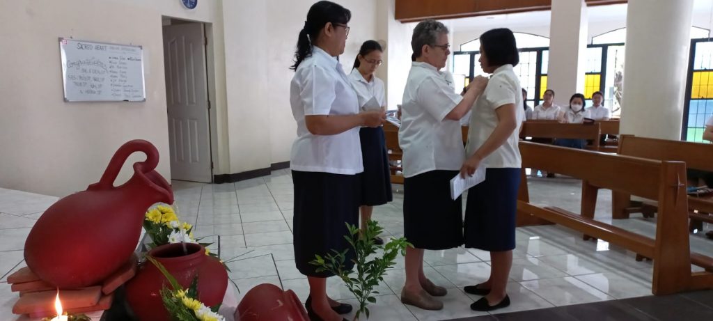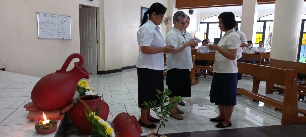 Hoy, 16 de junio de 2023, al reunirnos nuestras tres comunidades de Filipinas en San Carlos City, Pangasinan, como una gran familia, hemos tenido una doble celebración a primera hora de la mañana, en la capilla de nuestra comunidad: la Entrada al Noviciado de nuestra postulante Eden Pazzibugan, que se integró en la solemne celebración de Laudes y la segunda renovación de votos de las Hermanas en temporales: Nguyen Phuong Thuy, Ho Thi Bich Ngoc, Parla Mae Mosida, Tran Thi Bich Kim y Nguyen Thi Thu Huong dentro de la celebración de la Eucaristía.