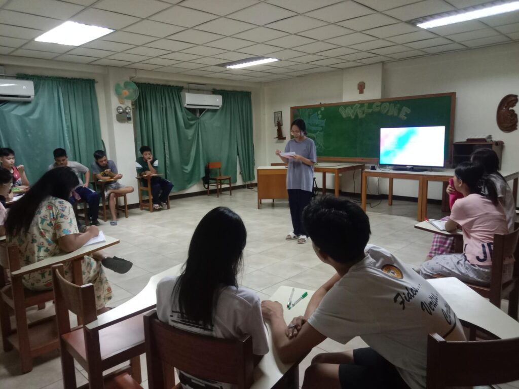 Después de esta visita al barangay, volvieron a la escuela para tener su retiro. Un tiempo para reflexionar y compartir sus experiencias a los ojos de la fe. El tema de la retiro era la confianza en el Señor, persuadidos de que Dios está con ellos.