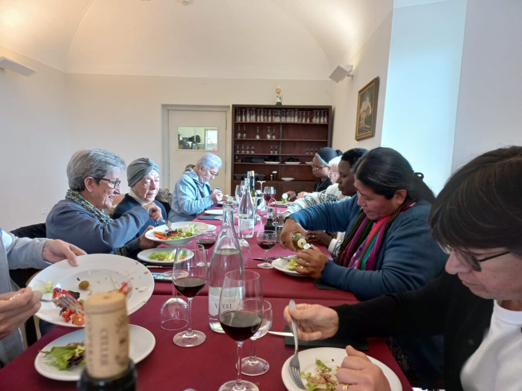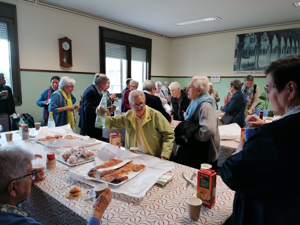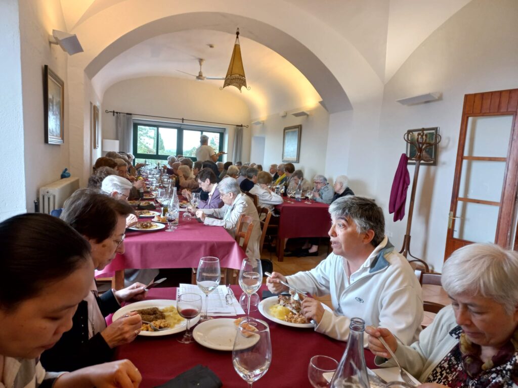 Després de la missa dinar de germanor al voltant d’una taula fraterna, on cadascuna va poder degustar l’àpat preferit escollit prèviament i, acompanyat de rialles i el diàleg distes  d’un dia de festa.