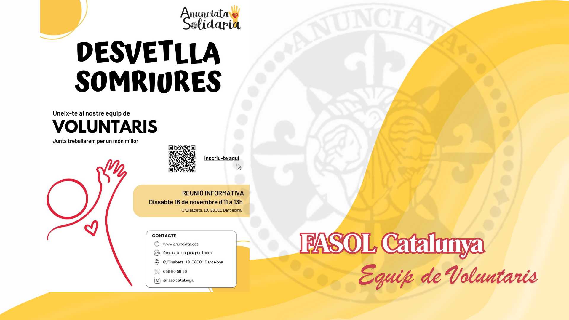 DESVETLLA SOMRIURES AMB NOSALTRES – FASOL Catalunya L’equip de voluntariat de la Província Sant Ramon de Penyafort (FASOL Catalunya) està format... Anunciata San Raimundo No Comments