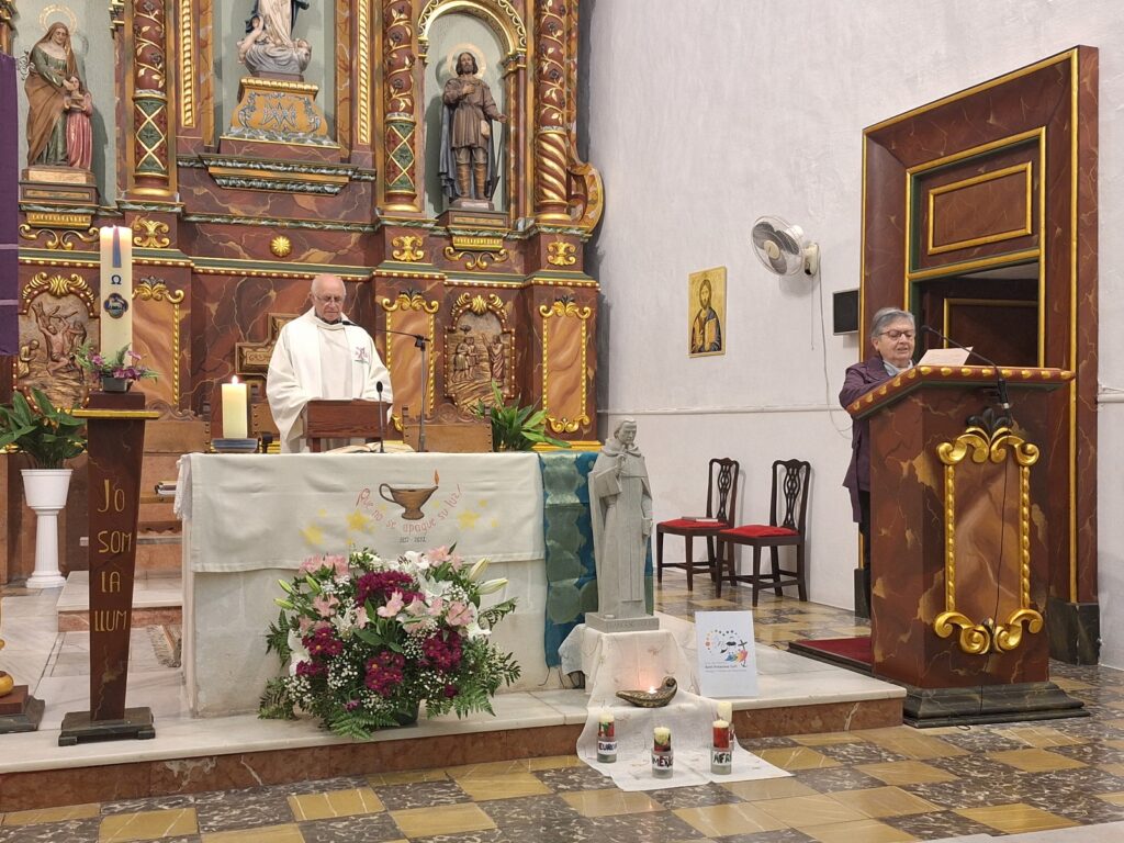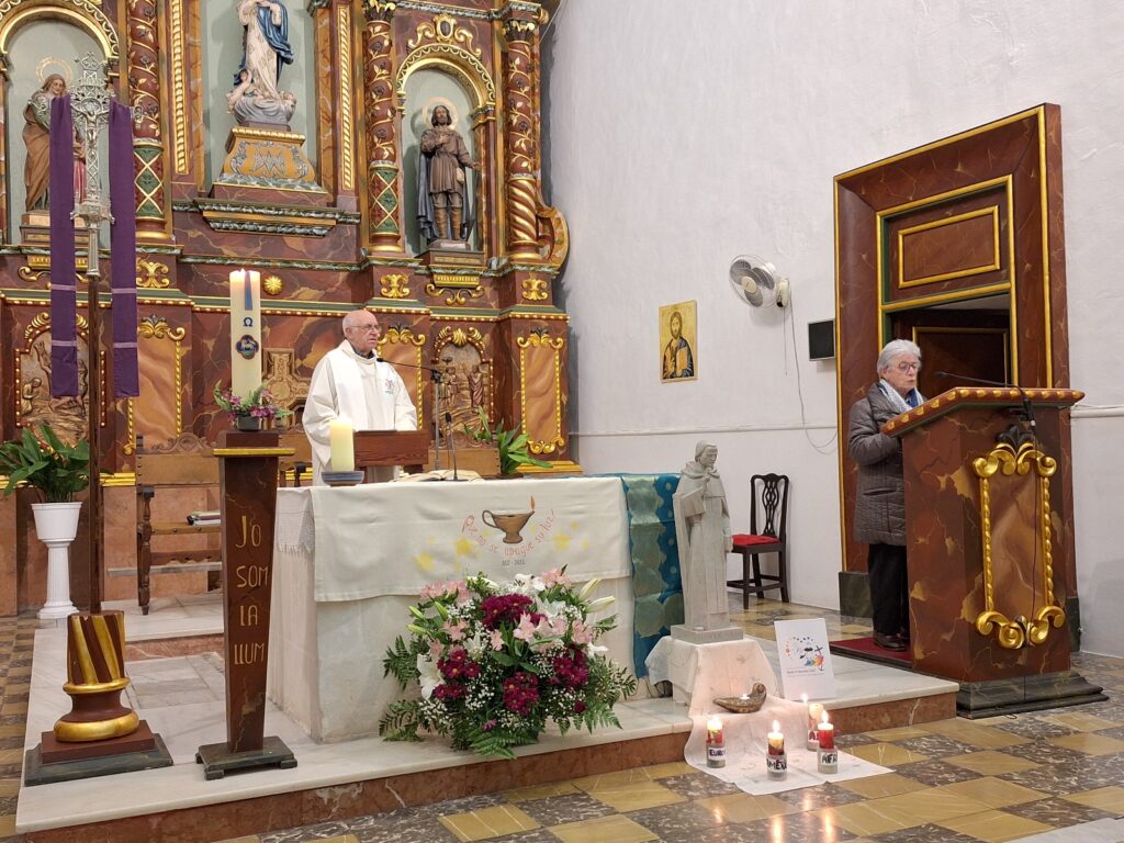 en el res de Laudes, en la transmissió en línia des de la Casa Sacerdotal de Vic, i en la solemne Eucaristia celebrada a la parròquia de Ferreries, bellament ambientada, molt concorreguda i participada per persones que et coneixen, t’estimen i agraeixen els favors que els has concedit. Entre elles, hi som les teves filles les Dominiques de Ferreries i de Maó.